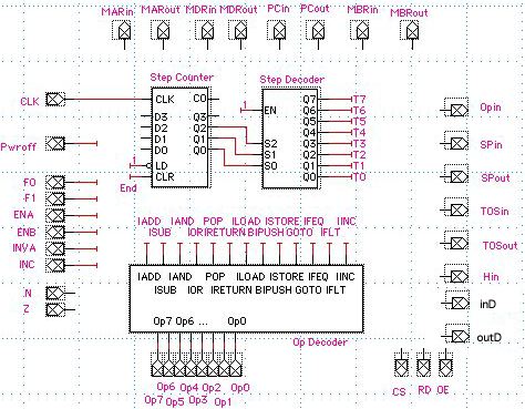 Here, the additonal devices Op Decoder, Step Counter, and Step