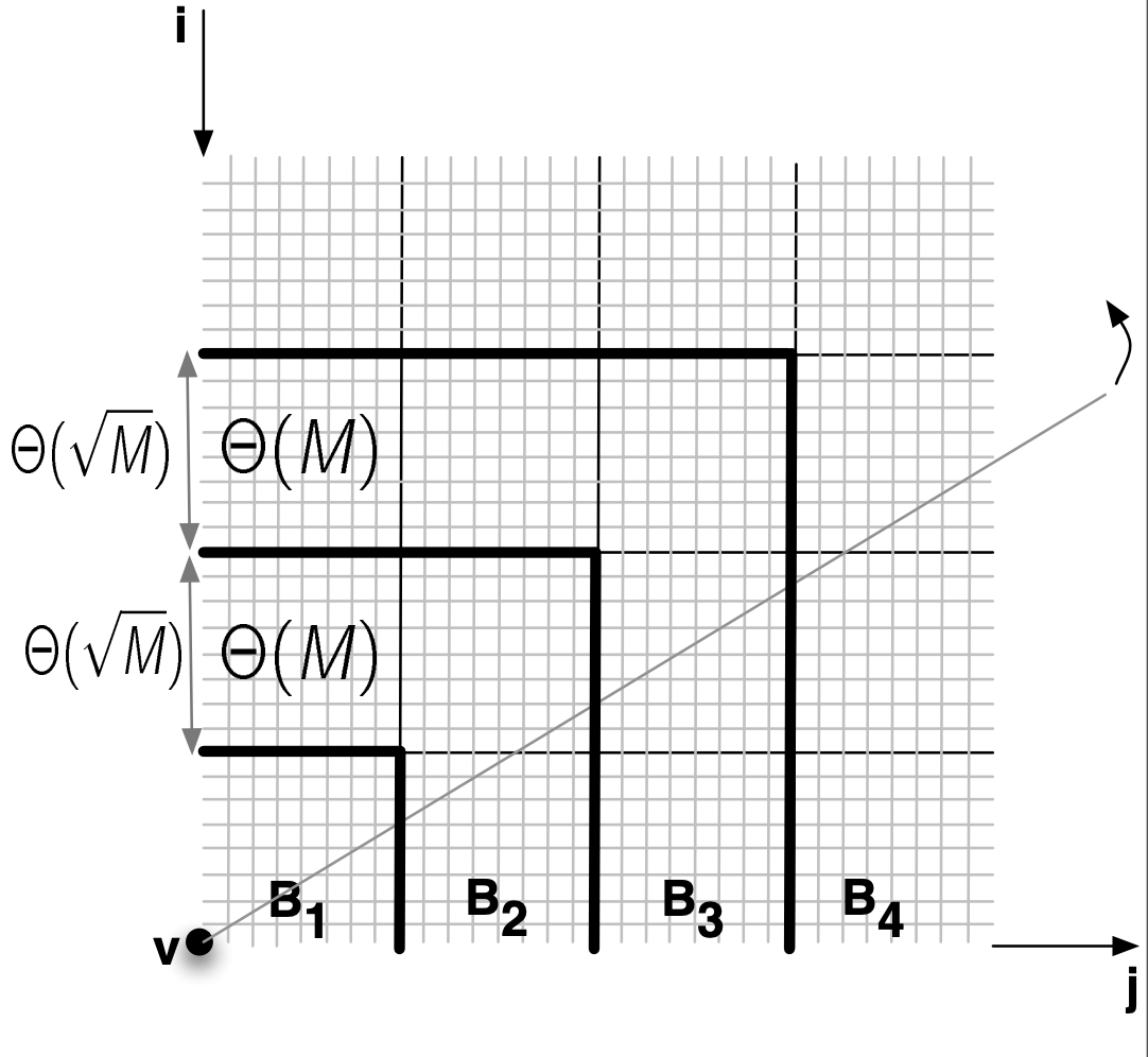 | Our module Terracost computes least-cost surfaces on massive grid terrains and is motivated by cost analysis in GIS. Computing a least-cost surface corresponds to the problem of computing multi-source shortest paths (MSSP) using an implicit graph given by grid topology. From a memory point of view, MSSP has a larger cache footprint and poorer spatial locality compared to SSSP. When the standard MSSP algorithm runs in external memory, it starts to thrash. Terracost's idea is to partition the graph in subgraphs with small boundaries, and replace each subgraph by a complete graph on its boundary vertices. The resulting graph has fewer vertices, preserves shortest paths, and the computation can be performed I/O-efficiently. Terracost is available as r.terracost in GRASS (extension library).