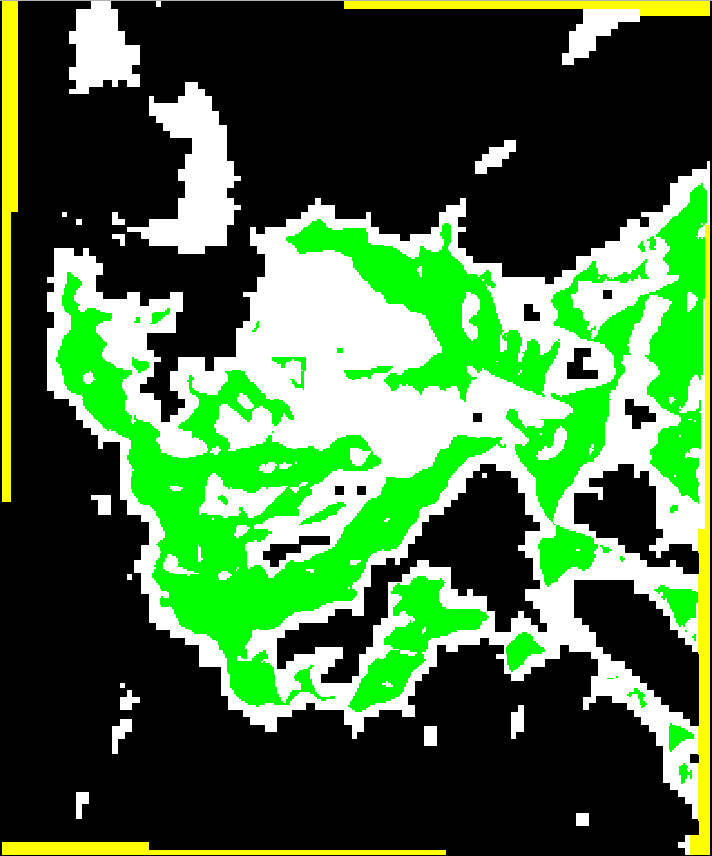sweeps the terrain centrifugally, growing a star-shaped