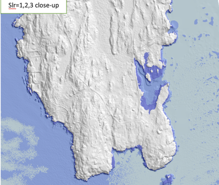 terrain gets flooded if a sea-level rise of x overlaps the